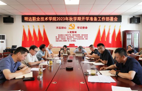 我校2023年秋学期开学准备工作会办会在行政楼二楼会议室召开,分别从设备、设施采购、学生宿舍整修、迎新工作计划、校园环境、教学准备、招生与就业等方面进行了汇报。