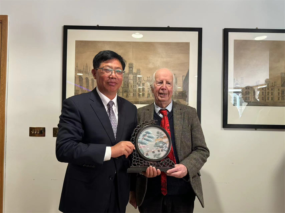 刘必千书记向剑桥大学国王学院院士、英国国家学术院院士Alan Macfarlane赠送纪念品